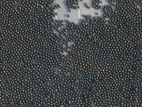 2、開(kāi)啟拋丸器,人工向拋丸器流沙管內(nèi)加入少量彈丸。